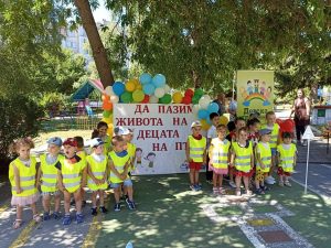 На интерактивната детска площадка снабдена с пътни знаци и маркировка малчуганите не изпитаха затруднение при  решаване на поставени задачи при пресичане на регулирани и нерегулирани кръстовища. С инспектори от пътна полиция разиграха реална ситуация за пресичане на уличното Платно извън детското заведение.