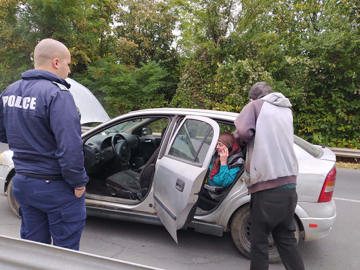 Мобилен екип, който посети насели места, при влизане в Шумен близо до изхода в посока 5 км забелязва дим от лек автомобил. Полицейските служители спират автомобила и оказват съдействие да изведат от него мъж и жена.