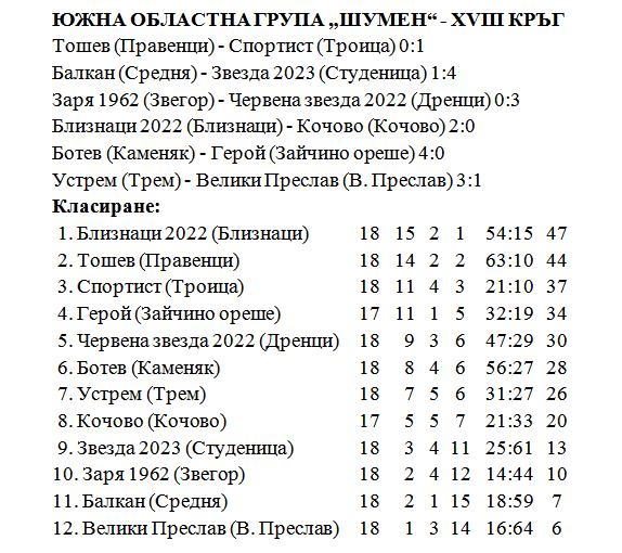 „Тошев“ (Правенци) и „Герой“ (Зайчино ореше) във финална битка за върха