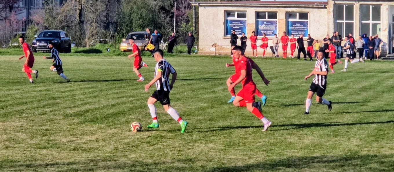 Домакините започнаха мача с голямо желание за пълен успех и го постигнаха по категоричен начин с играта си и през двете полувремена. В 20-та минута за нарушение вратарят на гостите Живко Вълчев получи директен червен картон. Наложи се полеви играч да застане на вратата на „Локомотив“ (Каспичан), а отборът да доиграе мача с човек по-малко на футболния терен. Само две минути след това Антоний Найденов от „Ендже“ (Царев брод) вкара за 1:0 след бърза контраатака. Три минути след това капитанът Петър Гочев удвои преднината на домакините. В 30-та минута Ахмед Ферхан направи резултата класически 3:0. В 40-та минута директно от пряк свободен удар от близо 25 метра Огнян Русев от гостите намали на 3:1, при който резултат двата отбора се прибраха на почивката между двете полувремена.