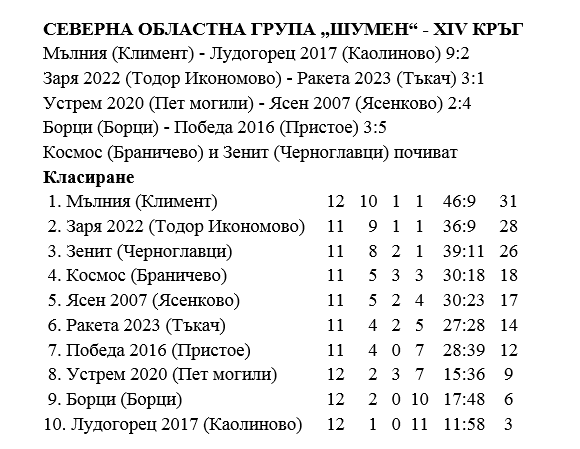 Отборите на „Космос“ (Браничево) и „Зенит“ (Черноглавци) в този кръг почиваха и не прибавиха нищо към актива си.