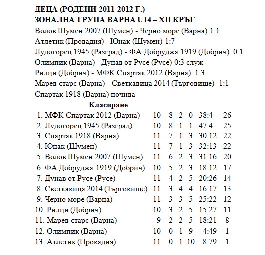 Футболистите на U14 „Волов-Шумен 2007“ – деца родени 2011 и 2012 година, приеха на Ученическия стадион „Панайот Волов“ връстниците си от U14 „Черно море“ (Варна) в мач от ХII кръг от Зонална група – Варна. Преди няколко кръга младите шуменци бяха начело в групата, но загубите у дома от „Лудогорец“ (Разград) и „Юнак“ (Шумен) ги оставиха малко назад в класирането. Въпреки по-слабото представяне в последните кръгове „Волов-Шумен 2007“ започна уверено двубоя. Още в първите минути те атакуваха вратата на Илия Атанасов, но гол не падаше след пропуски на Ердинч Ердуан, Корай Сали и Емир Билгинов. Гостите от Варна също бързо влязоха в ритъм и се озоваваха често пред вратата на Алпай Динчеров. Капитанът им Калоян Трендафилов, подпомаган от Ивайло Костадинов и Леонид Василев, осъществи не един и два пробива, с възможност да отбележат гол. Въпреки старанието на младите футболисти от двата отбора гол в първата част не падна и те се прибраха на почивка между двете полувремена с нулево равенство.