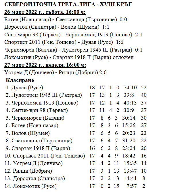 „Доростол“ (Силистра) не започна добре пролетният дял от първенството. Загуби от „Спортист“ (Генерал Тошево), „Септември“ (Тервел) и „Светкавица“ (Търговище), като че ли дойдоха в повече за футболистите от крайдунавския град. Гостите от Шумен също не започнаха добре – победа, равенство и загуба в играните три двубоя е незадоволително представяне в досега играните срещи. Резултата в Силистра щеше да е барометър за моментното състояние на отбора. Но уви. . . Въпреки по-добрата игра на „Волов“ (Шумен) и през двете полувремена мача завърши без победител – 1:1.